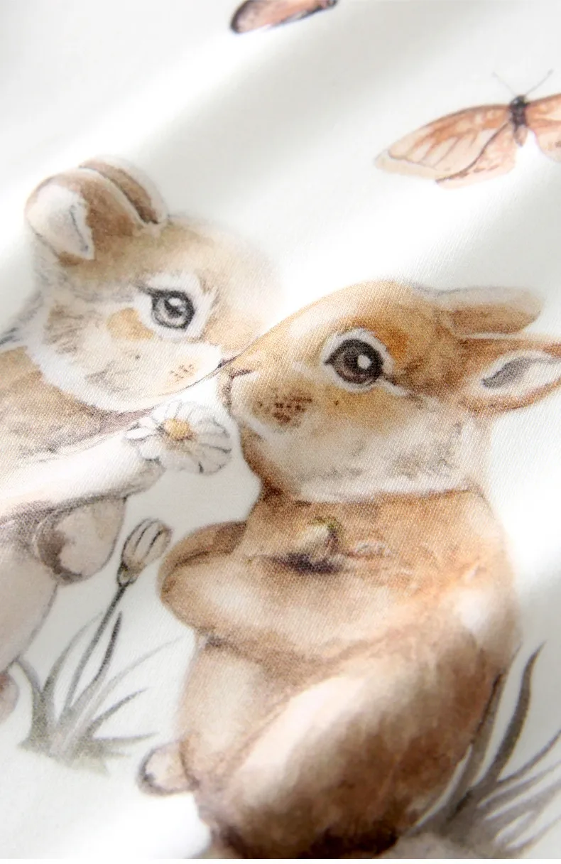 These beautiful rompers are have the most delicate whimsical print, creating a dreamlike theme in this range. The contrast legs, arms and cuffs highlight the delicate colours of the print.